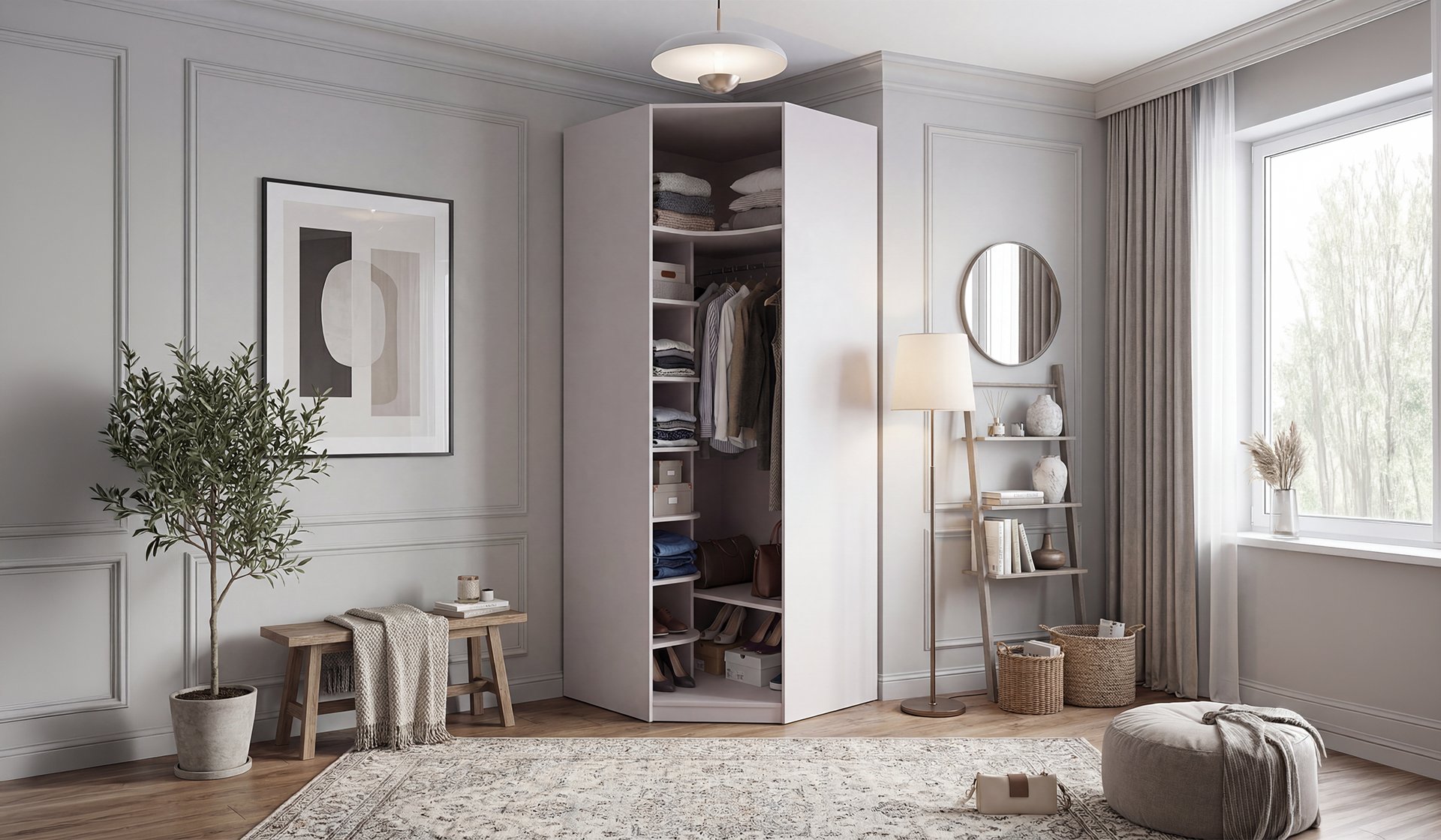 Zerre Tek Kapaklı Köşe Dolap, köşe alanlarını değerlendiren kompakt bir modüldür. Şık, fonksiyonel ve serinin tasarımına tam uyumlu çözüm.